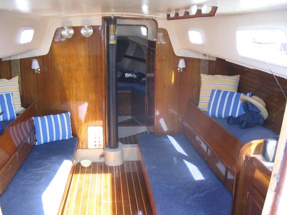 Montgomery Street - #55The Denning family began their 34-year involvement with the Cal 40, Montgomery Street in the spring of 1969. True to his nature, my dad, Jim didn’t tell anybody of his plans to trade in the 30 foot, wooden, Hurricane Class Sloop that he built and launched in 1958. When I saw the Cal 40 pull into our slip on the San Rafael Canal she looked like a Gold Plater-Mega Yacht compared to the hurricane. In the 60s, a forty-footer was a large boat! When I first stepped aboard, my excitement grew even more. Sooo much room! We could comfortably sleep 8, and someone didn’t have to leave their bunk to allow access to the toilet. The boat was completely equipped to go ocean racing. We had harnesses with whistles, and those little single cell flashlights, overboard poles with strobes, big flashlights and an anchor light that matched the strobes. The big bronze Barient 2 speed winches with ratcheting handles were “state of the art” for that time. Everything was clean and shiny and new looking, and since the boat had been the broker demo boat, we were the first “owners”. My dad, Jim, had dreamed of racing a Transpac, and at the ripe old age of 55 and with little experience as an ocean racer, he figured that no one would ever invite him to crew so he bought the boat. We had done numerous Lightship and Windjammer races, and he and I both enjoyed going “outside”. My lack of experience, and busy summer schedule precluded me from crewing on this race, and I didn’t push to go. Frank Bilek had been on Transpac before, and he was chosen to be project manager. He proceeded to load the boat like he would have loaded Java Head, or another wooden displacement boat. We even installed a false floor between the bunks for additional storage. There was a tool for every conceivable emergency, with back-up tools, and back-ups for them. When I compare what we took in 85 to the load carried in 69, I wonder how they ever got the boat to surf, but they sure did! They made the finish in almost exactly 12 days. Frank, a well-known marine surveyor, decided that the boat was noisy, unmanageable and dangerous. Montgomery Street made the return trip in just over 14 days. I first steered her from the St. Francis yacht Club through Raccoon Straights with the spinnaker up. The, now experienced, crew laughed at me as I tried to control the boat on a headstay reach. From that day, I was hooked. We raced YRA, every Danforth, Half Moon Bay, Santa Barbara, Mazatlan, Cabo, and every Transpac from 69 through 91 except the 79 (slowest ever) race. My first long distance ocean race was the 70 Mazatlan race. We didn’t do well, but Laurie Timpson had a never ending string of dirty jokes that made us want to get there ASAP. In 73 I sailed my first Transpac, and it was relatively uneventful. I do remember the pinpoint accuracy of our Australian born navigator. Ian Moody had navigated as a job in the oceans around his home country with the pinpoint accuracy necessary to find some of the tiny islands that they visited. He stuck his head out of the companionway at about midnight, and told me to watch for a light. As he pointed toward the port bow, a light flashed at the tip of his finger. Our hostess at the finish was a gorgeous woman who promptly deserted us for a bigger boat with more bachelors in the crew. Our navigation wasn’t always that good. On the 83 Cabo Race the naviguessor did his calculations with grease pencil on a sheet of plastic, and then erased the results, which effectively erased our log. I had no way of checking his work when he suddenly announced that we had to drop the chute and jib reach for that night and the next day to make the finish line in Cabo. A navigational error also gave us the opportunity to see the cliffs towering over the leper colony on Molokai during the 75 Transpac. This dramatic view was almost worth the embarrassment of the DFL in our class. The core crew for the local racing was my Dad Jim, my wife Suzy, Dave Killian, and myself. Dave usually delivered the boat home from the long distance races. I filled out the crew with friends chosen more for their attitude than skills. In fact, most of them joined the crew with no previous sailing experience, but they could eat cold fried chicken in the most challenging of conditions. One of my strongest Danforth Series memories is when we were sailing out from under the protection of Point Reyes on our way to Bodega Head buoy with just Ralph Harding and me on deck. We were getting hammered. The leeward winches were under water, and I was hanging on to the weather lifeline to keep from being pitched over the leeward side and into the water. When I looked over at Ralph, he was grinning ear-to-ear, and chuckling, “This is just perfect. Isn’t this great?” I didn’t know whether to be assured, or fear for my life with this madman at the helm. The 81 Transpac had a couple of memorable moments. The first was about ½ hour after Rick Shultz and I had been relieved from our 9 to midnight watch. There were several severe rolls combined with banging and crashing as we rounded up, and then down several times. The tool drawer went flying across the cabin, narrowly missing one of the crewmembers in his bunk on the low side. I was first on deck, and I can still visualize the sight. My dad was floating around the back of the flooded cockpit on his tether. There, through the driving rain, standing before me was a vision of the helmsman, eyes wide, frozen, with a death grip on the tiller. I had to pry his hands off the tiller and push him out of the way to regain control. We were surfing at full speed with the spinnaker pole half way to vertical, the main jibed to the wrong side, and a giant tear in the main between the top 2 battens. As the Bosun’, I spent from midnight until breakfast sewing the main, and damaged spinnaker. I was once told that every sea story begins with “Christ, there we were” and ends with “She went down like 