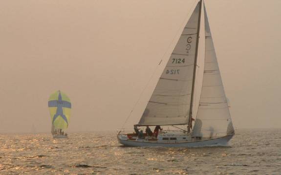 Cal 40 Strategies: In windward-leeward races, a few more bodies on the rail are fast (in L.A., at least, where we have a fairly consistent 15 kt. afternoon westerly). The basics: get the weight out of the ends, reduce weight where possible, gear break-downs are the skipper’s fault, smooth bottom, good sails (with good spreader patches and spreader boots), consistent crew and practice with them, conservative tactics.Concentrate on target boat-speeds.